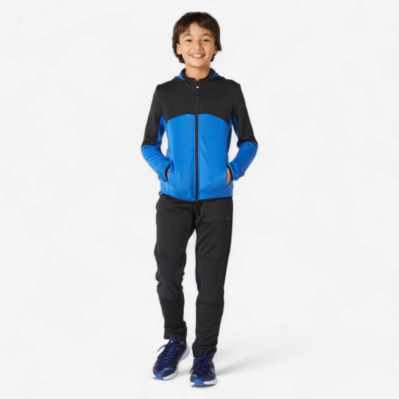 8640183Een technisch trainingspak (hoody met rits + broek) voor de sportactiviteiten van kinderen op alle velden en op school.Een warme en ademende stof, verschillende verluchtingszones, zakken in het vest en in de broek … dit trainingspak is onmisbaar voor sportievelingen!