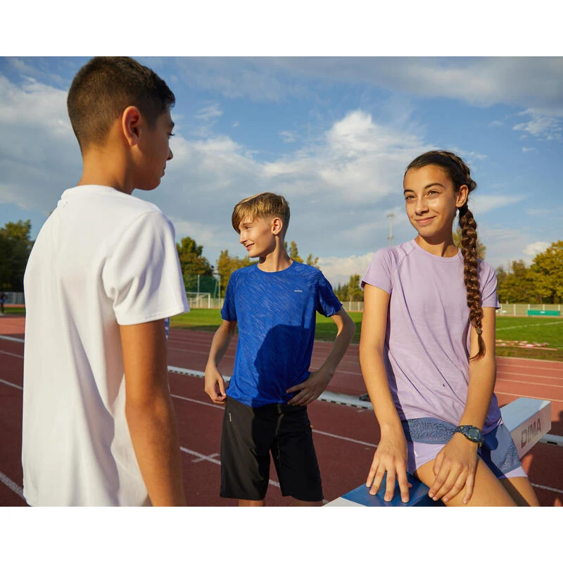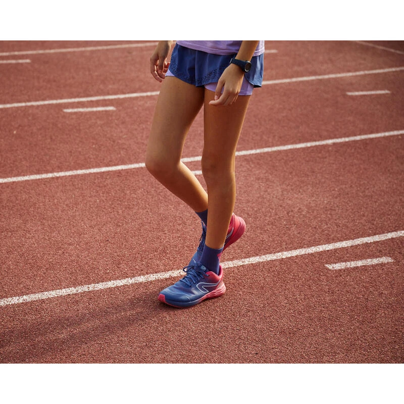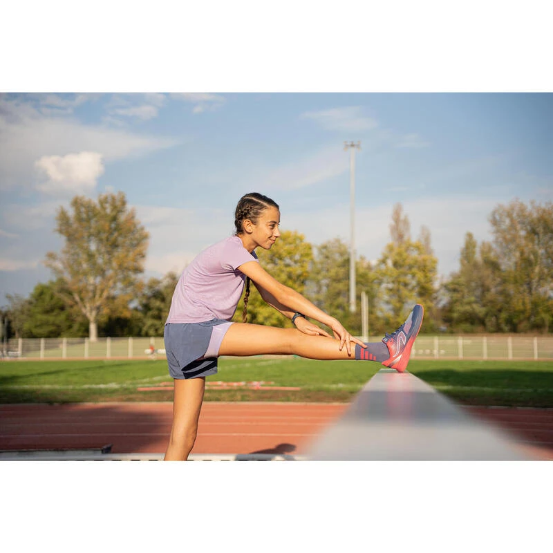Ademende Hardloopshort En Korte Tight 2-in-1 Meisjes DRY+ Jeansblauw En Zachtpaars