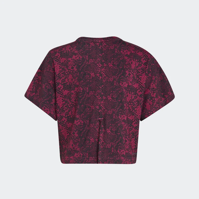 Eindeloze set burpees? Kom maar op. Dit junior adidas AEROREADY T-shirt houdt je droog en gefocust tijdens de training. Het voelt licht en luchtig aan dankzij de split midden op de rug en de ademende stof. En als je gebruikelijke sportschooltenue uit zwarte T-shirts en leggings bestaat, vormt de dierenprint een leuke variatie.Dit product, gemaakt met een reeks gerecyclede materialen en ten minste 70% aan gerecyclede grondstoffen, vertegenwoordigt slechts één van onze oplossingen om te helpen een einde te maken aan plastic afval.