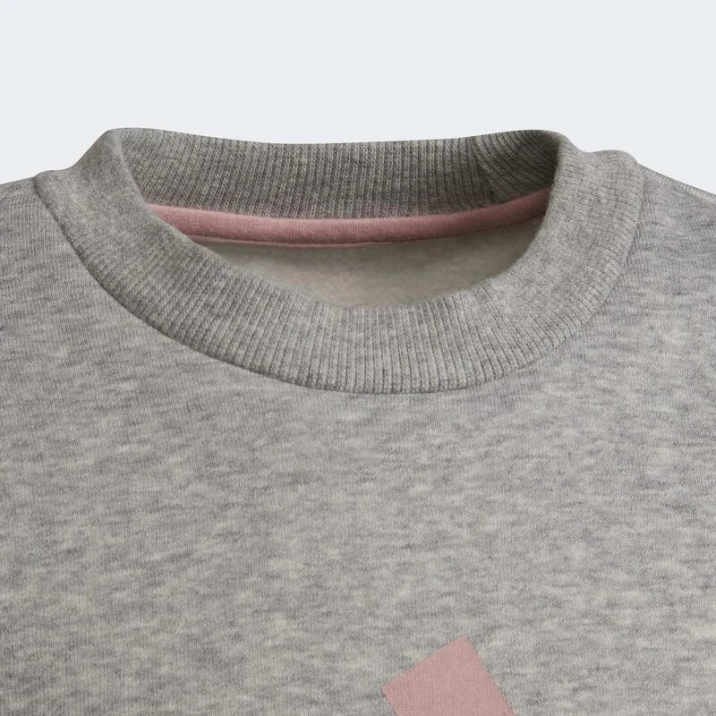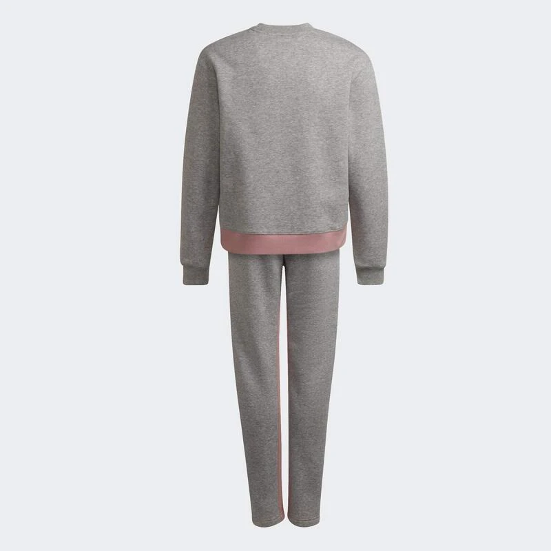 Laat je bloed sneller stromen en zet je spieren in beweging in dit junior trainingspak. De combinatie van sweatshirt en broek is gemaakt van fleece met katoen die je comfortabel houdt terwijl je je in het zweet werkt. De set biedt ook de perfecte sportieve look om te dragen na je training. Om de grotere impact te vermijden die de productie van nieuw materiaal heeft op het milieu, is dit item gemaakt met gerecycled materiaal dat afkomstig is van post-consumer restafval en productieafval zoals snijresten.