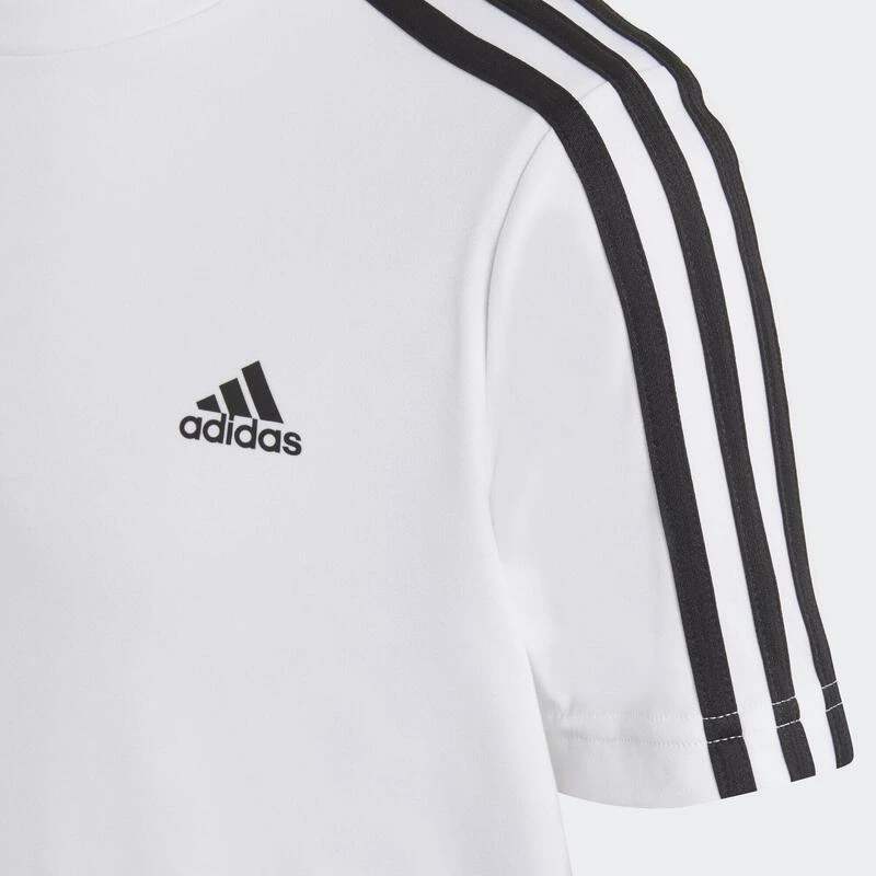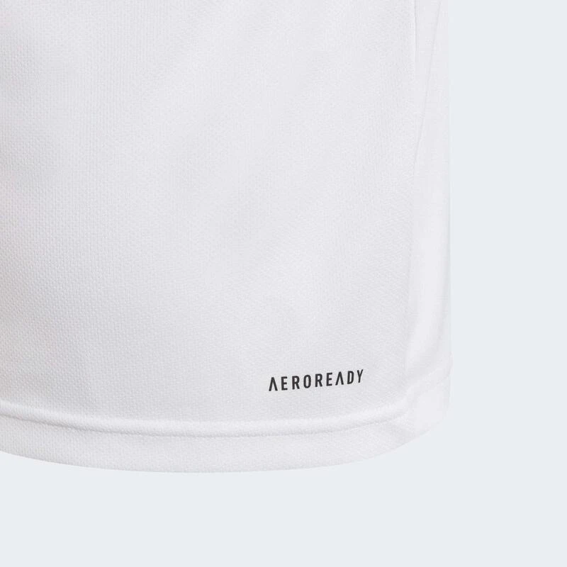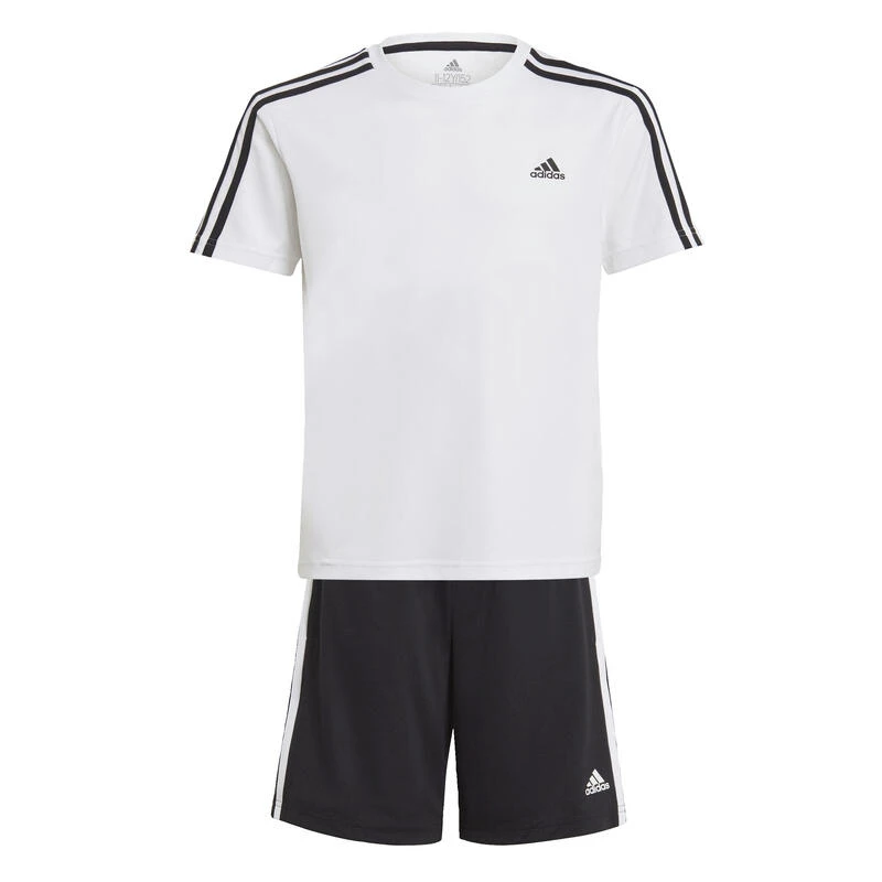 Voel je een superster als je in deze junior adidas set van T-shirt en short het veld op stapt. De 3-Stripes op de schouders en short zien er precies zo uit als wat je favoriete sporters dragen. AEROREADY houdt je droog en comfortabel terwijl jij de intensiteit opvoert.Dit product is gemaakt met Primegreen: een reeks gerecyclede high-performance materialen.