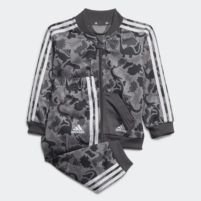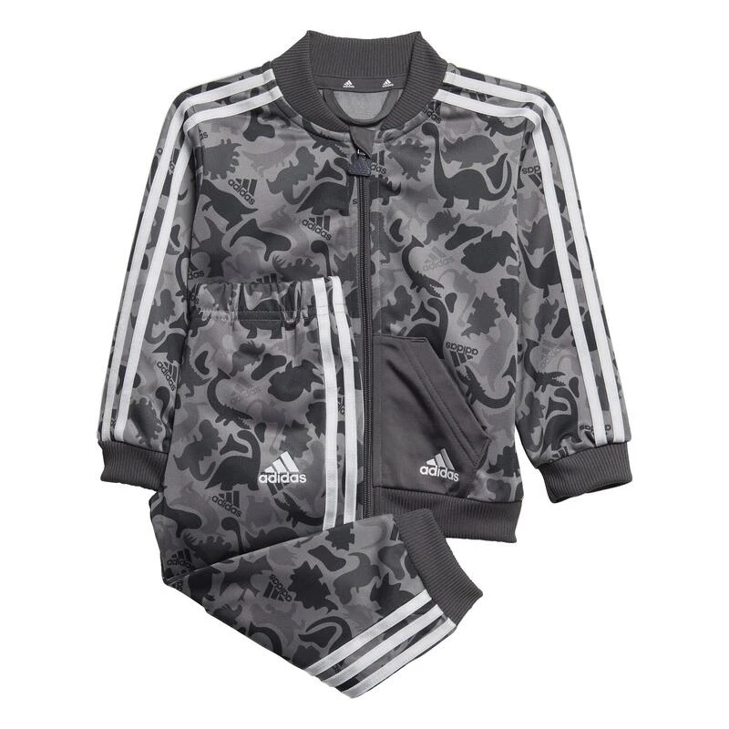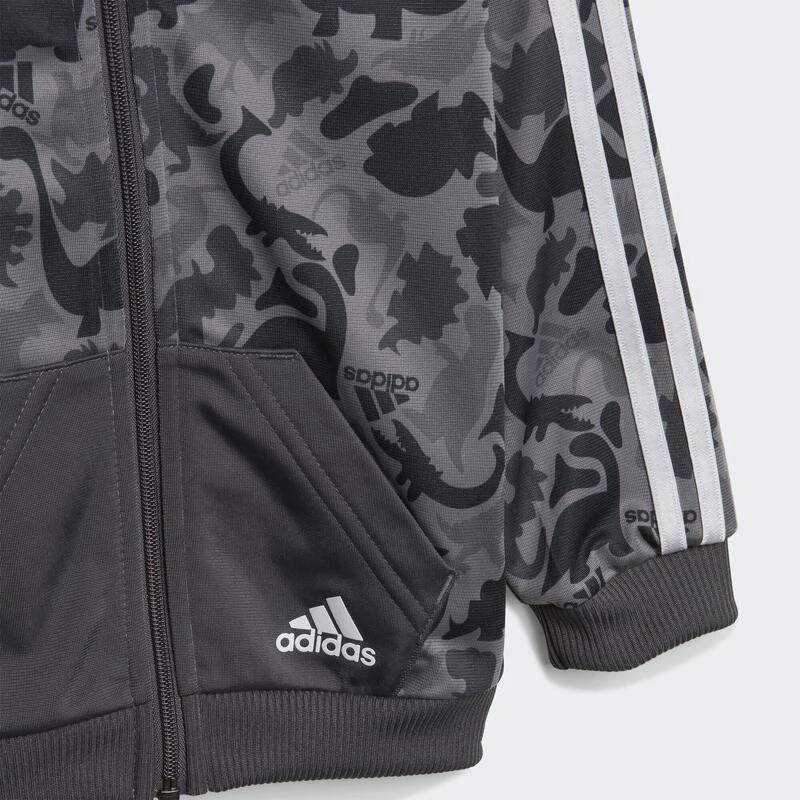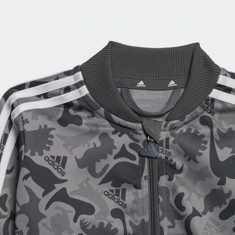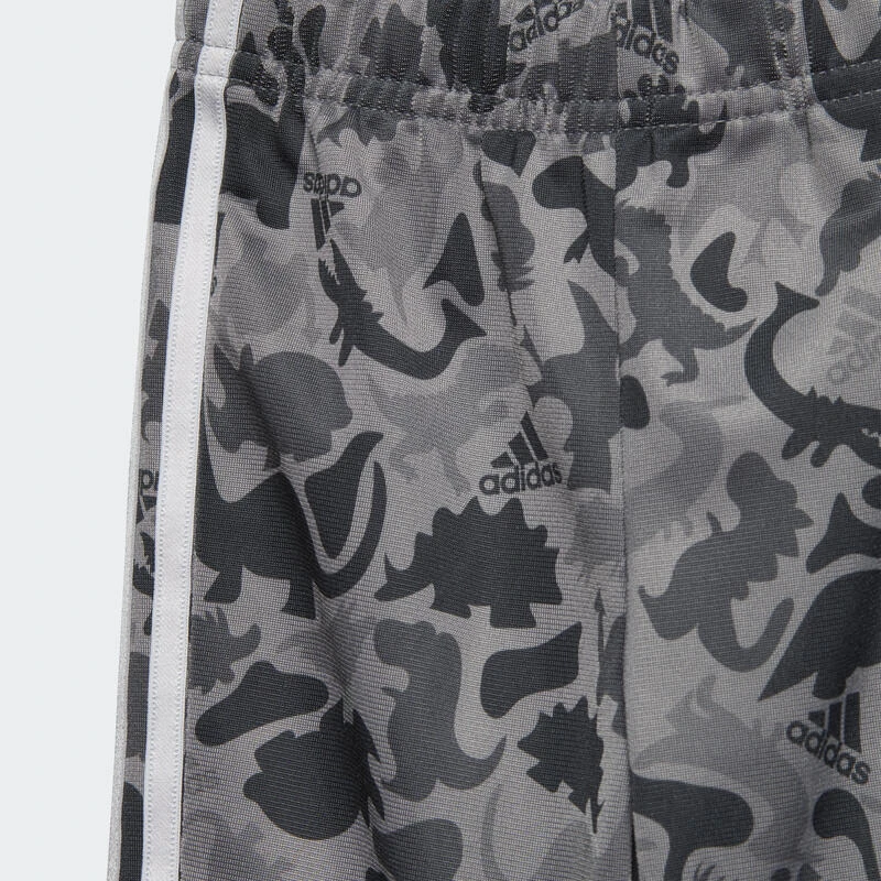 Als je deze camo-print van dichtbij bekijkt, zie je alle favoriete dinosaurussen van je peuter. Dit adidas trainingspakje is licht en luchtig, wat ’t ideaal maakt voor dagelijkse ontdekkingstochten. De makkelijk aan te trekken broek heeft strakke pijpen die perfect in kleine regenlaarsjes passen. Dit met 100% gerecyclede materialen gemaakte product vertegenwoordigt slechts één van onze oplossingen om te helpen een einde te maken aan plastic afval.