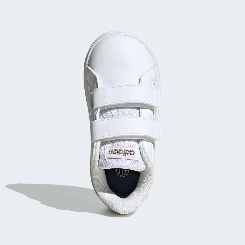 Jij weet dat het een Grand Court adidas klassieker is. Je kleintje weet alleen dat-ie op jouw schoenen lijkt. Dus combineer je eigen 3-Stripes met deze schattige versie voor peuters. De sneakertjes zijn makkelijk aan en uit te trekken, en hebben een buigzame voorvoet voor onbelemmerd rondstampen, hobbelen en rennen. En door de klittenbandsluiting is zelf aankleden ook een optie geworden. Het bovenwerk bestaat voor minstens 50% uit verschillende gerecyclede materialen. Dit product vertegenwoordigt slechts één van onze oplossingen om plastic afval te verminderen.