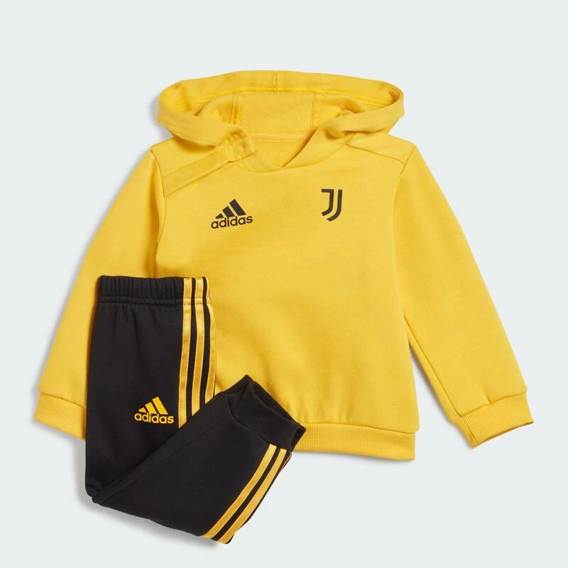 Een eerbetoon aan hun jongste fans. Dit adidas Juventus joggingpak voor peuters heeft een levendige look en voelt zacht aan voor een hele dag comfort. De opgestreken clubbadges op de fleece van een katoenmix markeren het begin van een gloednieuw voetbalavontuur.Minimaal 70% van dit product bestaat uit een mix van gerecyclede en hernieuwbare materialen.
