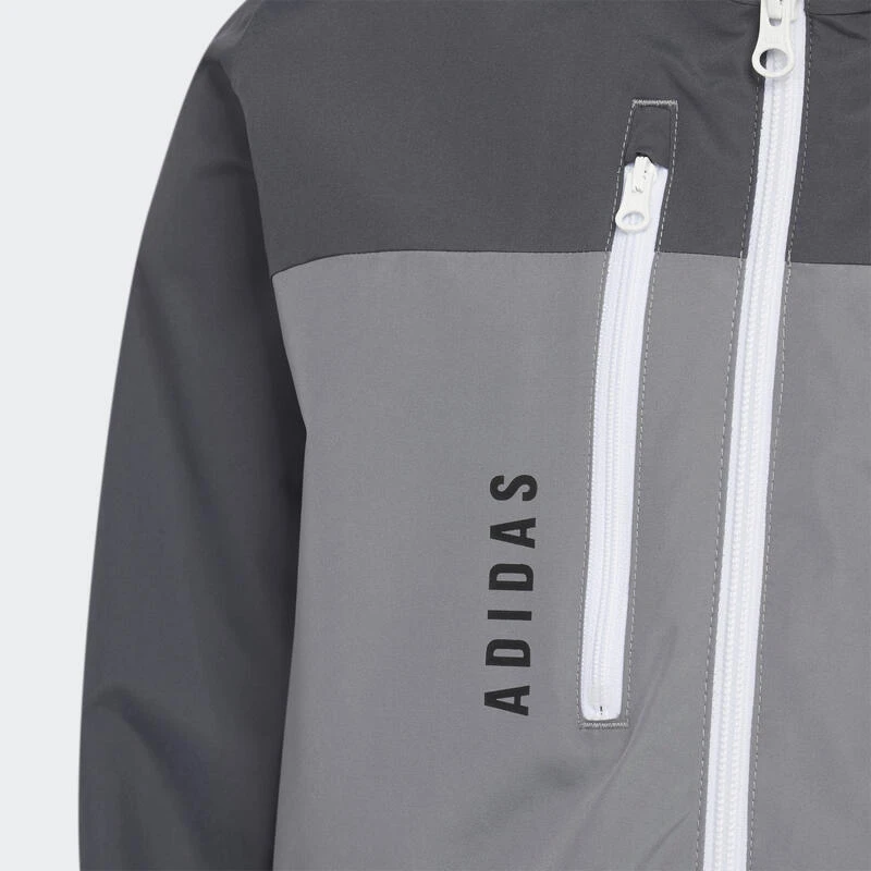 Laat de elementen je golfspel niet in de weg staan. Dit junior adidas jack heeft gesealde naden, zodat je warm en droog blijft als het regent. In het borstzakje met rits berg je je potlood en scorekaart op tijdens het spelen. De elastische boorden voorkomen dat je tijdens die cruciale putt gehinderd wordt door het weer.Om de grotere impact te vermijden die de productie van nieuw materiaal heeft op het milieu, is dit item gemaakt met gerecycled materiaal dat afkomstig is van post-consumer restafval en productieafval zoals snijresten.