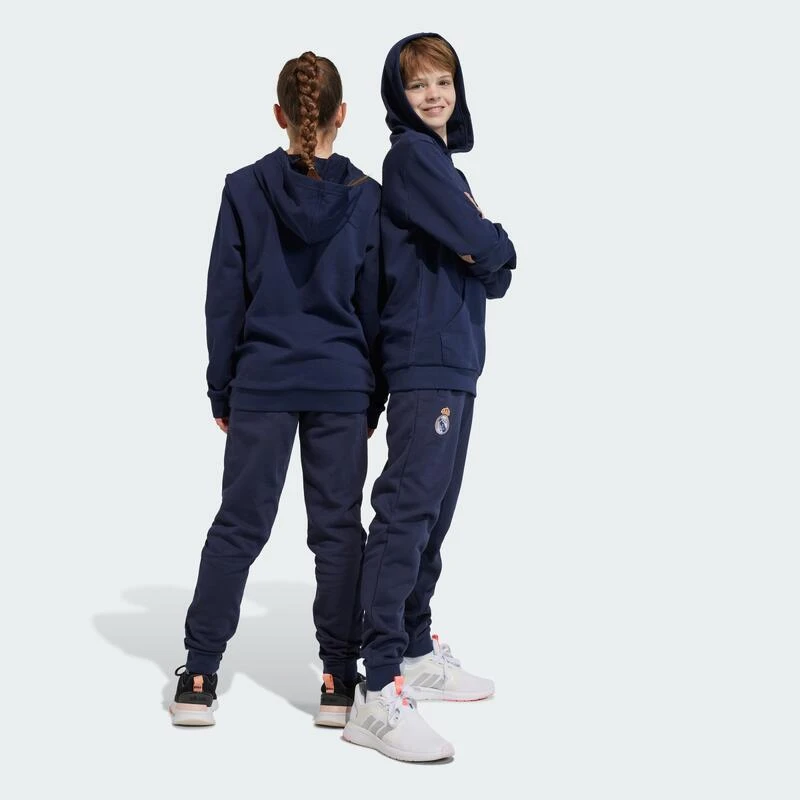 Met deze junior adidas voetbalbroek laat je zien dat Real Madrid voor jou belangrijk is. Het nauwsluitende model van zachte sweaterstof minimaliseert afleiding. Door de geribbelde boorden blijft-ie comfortabel op z’n plek zitten, en met dat o zo belangrijke geborduurde embleem vertegenwoordig je overal de Europese reuzen.Minimaal 70% van dit product bestaat uit een mix van gerecyclede en hernieuwbare materialen.
