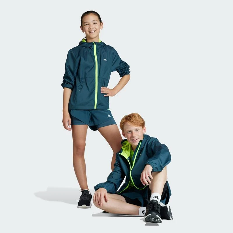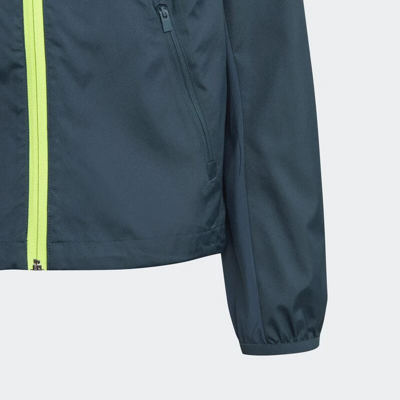 Het weer mag dan veranderen, dat hoeft niet voor je plannen te gelden. Dit junior adidas windjack is uitgerust met WIND.RDY om krachtige windvlagen en buien op afstand te houden. Maak de zoom strakker voor wat extra bescherming tegen de elementen. Rits je zakken dicht. Stap dan zelfverzekerd de deur uit. Dit met 100% gerecyclede materialen gemaakte product vertegenwoordigt slechts één van onze oplossingen om te helpen een einde te maken aan plastic afval.
