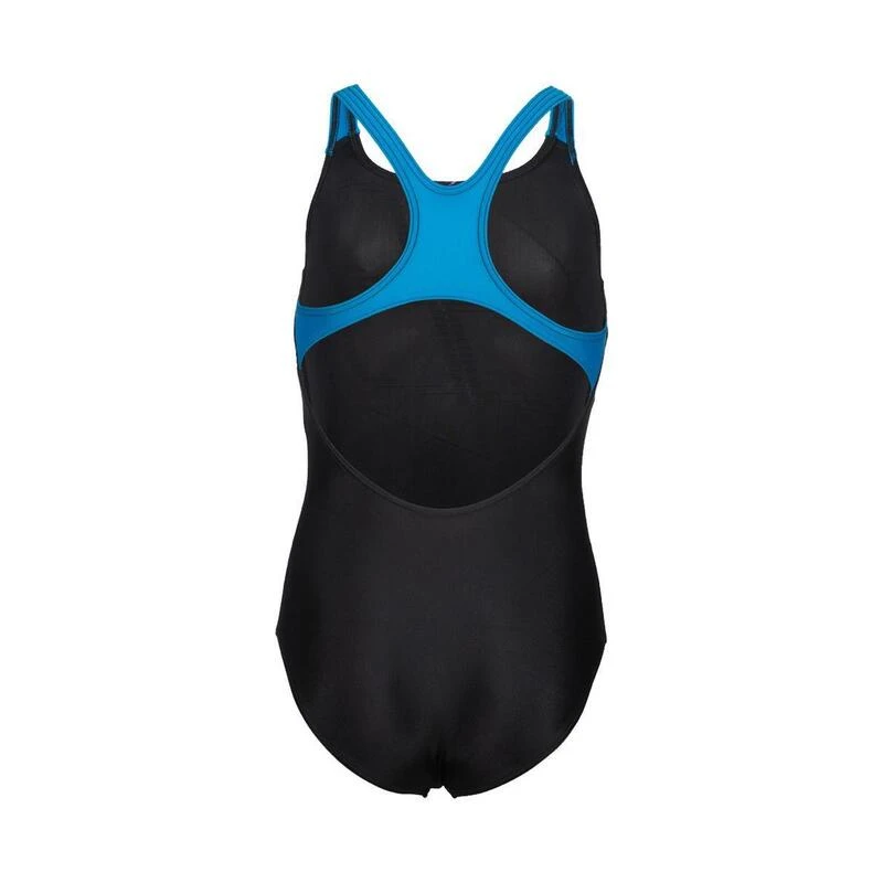 The Arena Girl’s Swim Pro Logo Swimsuit in Black and Turquoise is the ideal swimsuit for intense training days and regular pool use.