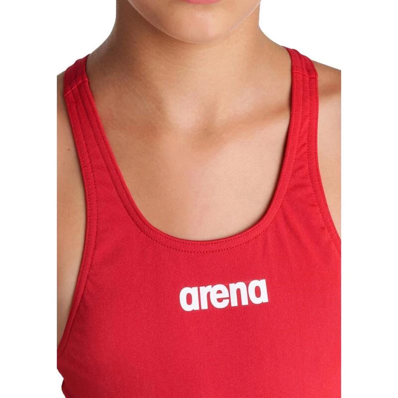 Arena Girl’s Team Solid Tech Swimsuit in Red is the ideal swimsuit for intense training days and regular pool use.