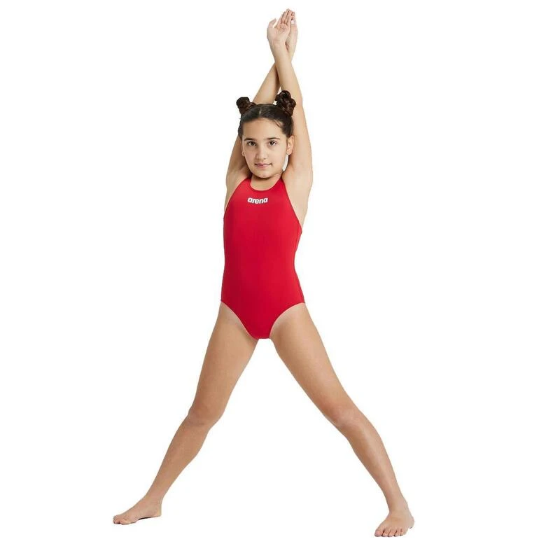 Der rote Solid Swim Pro Badeanzug für Mädchen von Arena ist der ideale Badeanzug für intensive Trainingstage und regelmäßigen Schwimmbadbesuch.