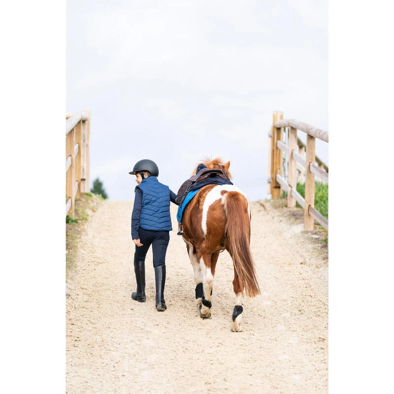 8580035Onze productontwikkelaars, zelf ook fervente ruiters, ontwierpen deze bodywarmer voor kinderen die regelmatig paardrijden bij fris weer.Onze bodywarmer 500 zal je beslist bevallen omdat hij comfortabel is en goed blijft zitten. Hij houdt je warm als het frisjes is.