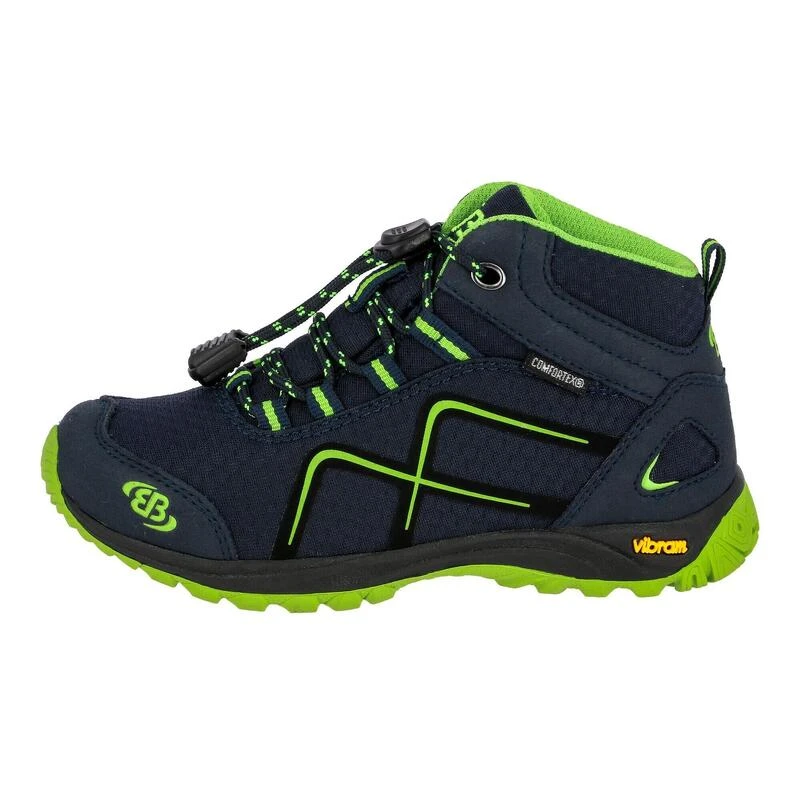Met deze outdoorschoen van Brütting bent u optimaal uitgerust en klaar om nieuwe paden te verkennen. Het nylon bovenmateriaal is een echt pluspunt. Het ziet er geweldig uit en zorgt voor een aangenaam draagcomfort. De binnenzool en het binnenmateriaal zijn gemaakt van textiel voor een hoog comfort. De voet is zacht omsloten en ligt comfortabel in bed. De uitneembare binnenzool maakt de schoen geschikt voor losse inlegzolen, die in een paar stappen kunnen worden geplaatst. Synthetische bekleding geeft de schoen een sportieve stijl. Met het snelvetersysteem gaat er geen tijd verloren bij het aan- en uittrekken. Natuurlijk maakt ook de flexibele rubberen zool deel uit van het allround feel-good pakket. Voor natuurliefhebbers en liefhebbers van frisse lucht is deze outdoorschoen van Brütting precies het juiste. , Outdoorlaars voor kinderen en tieners van nylon met synthetische bies, snelvetersysteem, waterdicht en ademend Comfortex-klimaatmembraan, textielen voering, verwisselbare textielen binnenzool, stabiele en slipvaste Vibram-buitenzool,