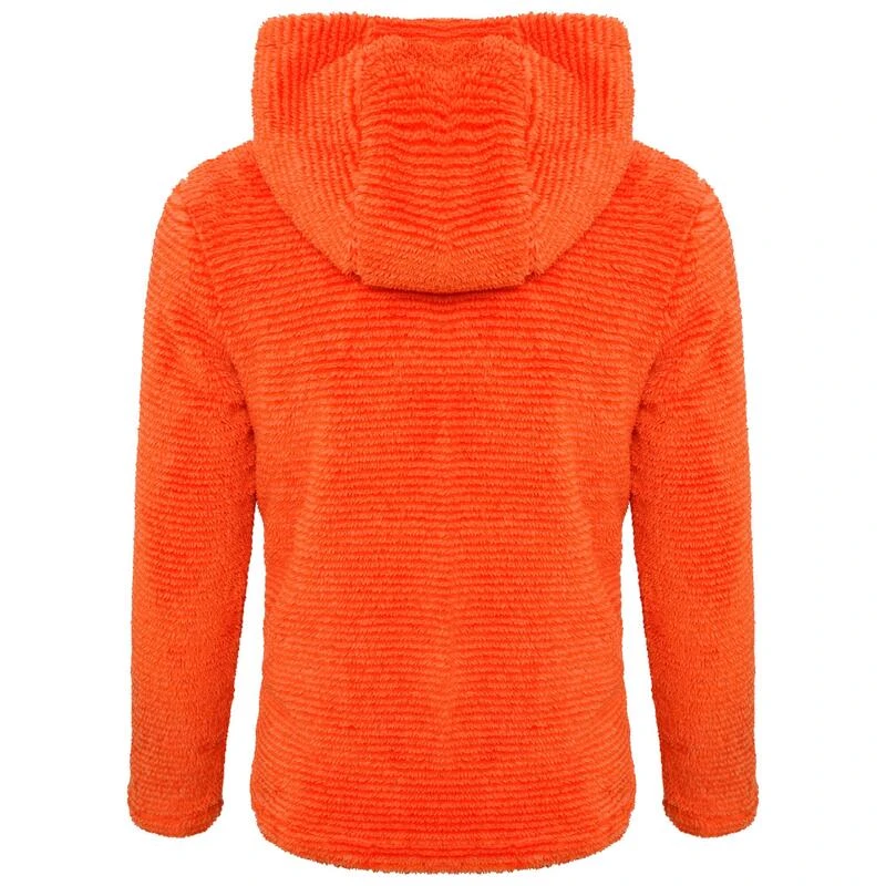 Uniseks donzige fleece met capuchon en hele rits voor kinderen, met zakken en gestreepte details. Geschikt voor skiën/snowboarden.