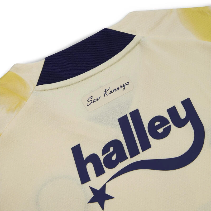 Bij Fenerbahçe S.K. pronken ze graag met hun veren. Het 2022/23 Fenerbahçe S.K. uittenue draagt de bijnaam van het team: Sarı Kanaryalar (de Gele Kanaries). Het lichtgele shirt heeft een wervelende, herhalende graphic die is geïnspireerd op de kanarie en wordt aangevuld met een marineblauwe short en gele sokken voor een opvallende en briljante look tijdens uitwedstrijden.