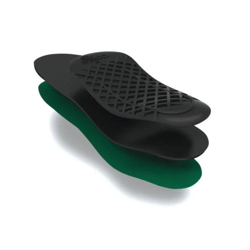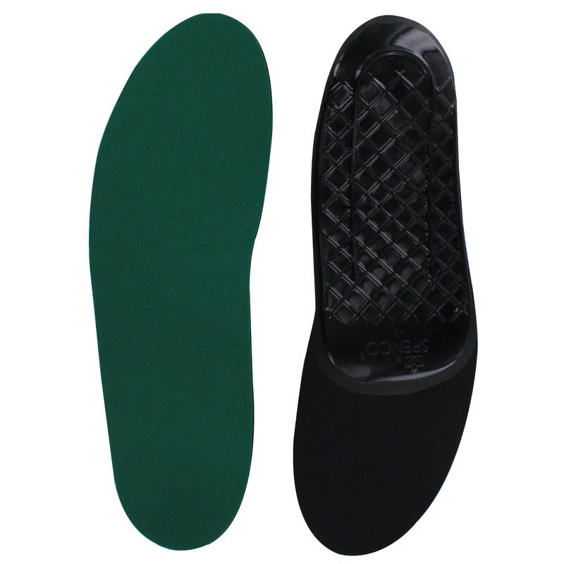 Spenco RX orthopedische inlegzolen helpen de voet te controleren, stabiliseren en in evenwicht te brengen. Ontwerp over de volledige lengte biedt comfort van hiel tot teen. Deze binnenzool biedt stevige ondersteuning van de voetboog om pronatie en supinatie te verminderen voor een betere stabiliteit. Ideaal voor atletisch of casual schoeisel, inclusief laarzen, Spenco RX-orthese-inlegzolen zijn verkrijgbaar in meerdere maten voor een juiste positionering van de voetboog en verbeterd comfort. Spencore-materiaal biedt een dempende laag die schokken en stoten absorbeert en tegelijkertijd extra comfort biedt. 4-way stretchstof met Silpure antimicrobiële technologie helpt blaren te voorkomen door geurtjes onder controle te houden. Dankzij flexibel plastic kunt u de binnenzool perfect naar uw voet vormen. Handwas en indien nodig aan de lucht drogen.