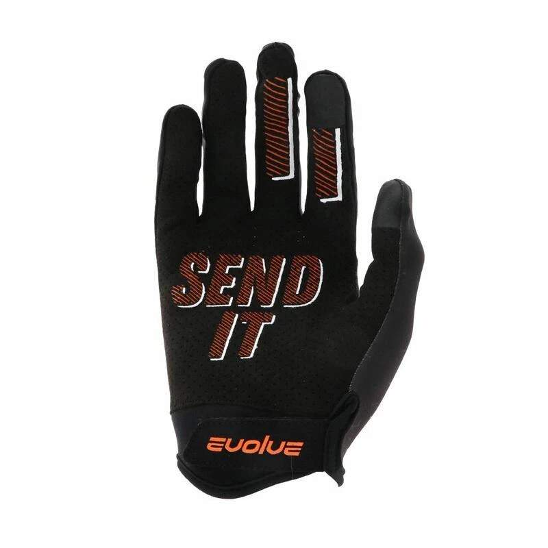 De palm is microgeperforeerd om ervoor te zorgen dat vocht van de hand wordt afgevoerd en biedt toch een hoge weerstand tegen slijtage. De rug, gemaakt van elastische stoffen, biedt een grote mobiliteit om uw elke beweging te begeleiden. De rekbare inzetstukken tussen de vingers verhogen de flexibiliteit van het geheel. De pols wordt op zijn plaats gehouden met klittenband voor een perfecte pasvorm. Om verbonden te blijven zijn de wijsvinger en de duim voorzien van een technische draad die de vinger tastbaar maakt. Een nieuw silicone ontwerp op de vingers is ontwikkeld om een betere controle over de hendel te krijgen.