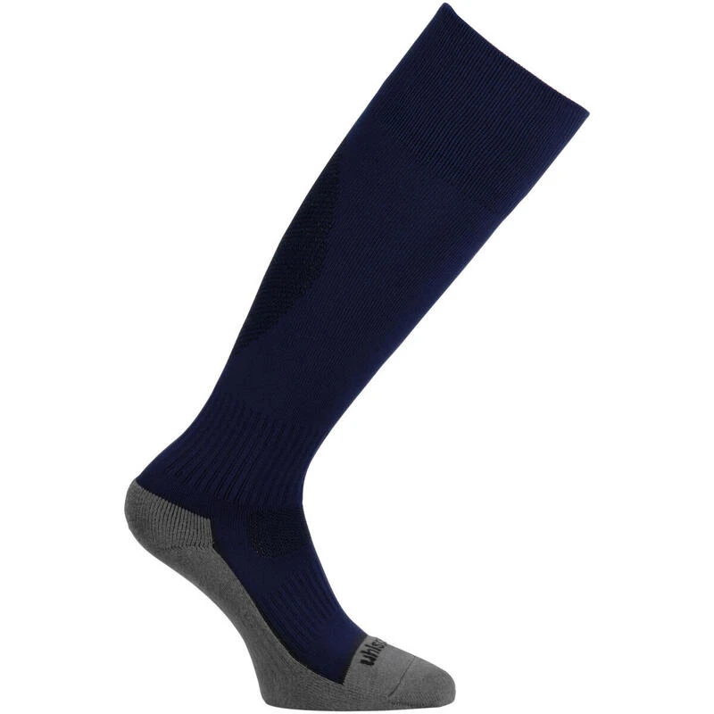 inscriptie uhlsport op de bovenkant van de tenenkatoenvoetrekbaar gebied in de kuit en onder de enkel