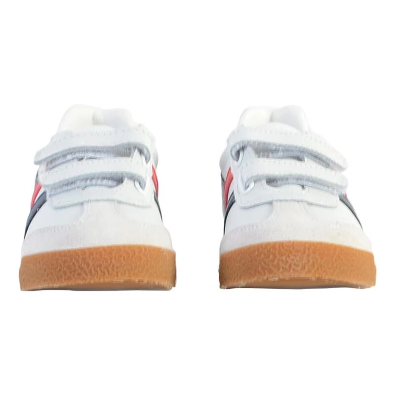 Met alle charme van de volwassen versie van de Harrier, maar in kleinere maten voor de kleintjes, is de Harrier Leather Strap een welkome aanvulling op de sneakercollectie voor kinderen van Gola. Gebaseerd op de originele Harrier uit 1968, maar aangepast met een klittenbandsluiting met twee spijlen, is deze witte lederen optie met navy en rode accenten een leuke vintage schoenkeuze voor kinderen.