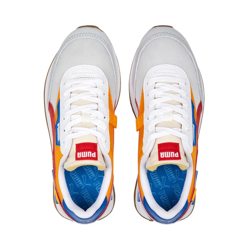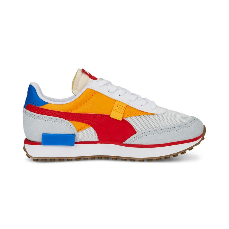 De Fast Rider ontstond in 1980, net toen het hardlopen zich begon te verplaatsen van het circuit naar de straat. Deze schoen, ontworpen voor het meest onvoorspelbare terrein, heeft een lichtgewicht ultra gedempt nylon bovenwerk en onze schokabsorberende Federbein buitenzool. In 2021 keert de iconische versie terug, deze keer als de Future Rider. Met zijn opvallende logo, trendy kleurencombinaties en retro chic silhouet is deze originele schoen ideaal om in stijl de stad in te trekken.