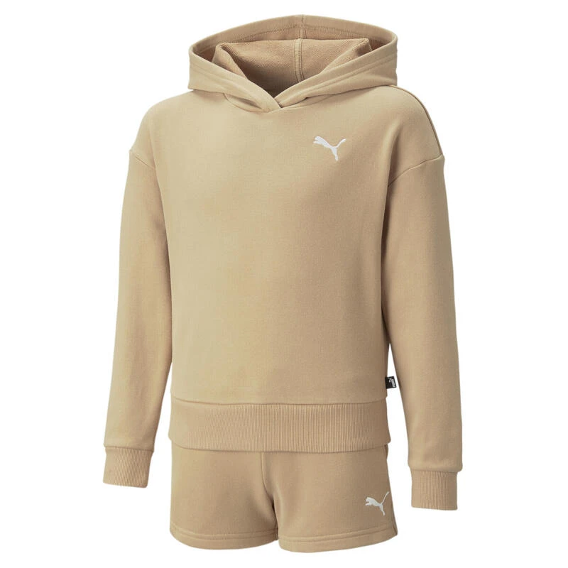 Laten we het kort en krachtig houden, oké? Dit schattige en warme korte loungepak doet dat zeker. Loungen zag er nog nooit zo cool uit als deze combinatie van een comfortabele, klassieke PUMA-hoodie en een strakke short. Subtiele PUMA-branding maakt het helemaal af voor een look die het casual houdt.