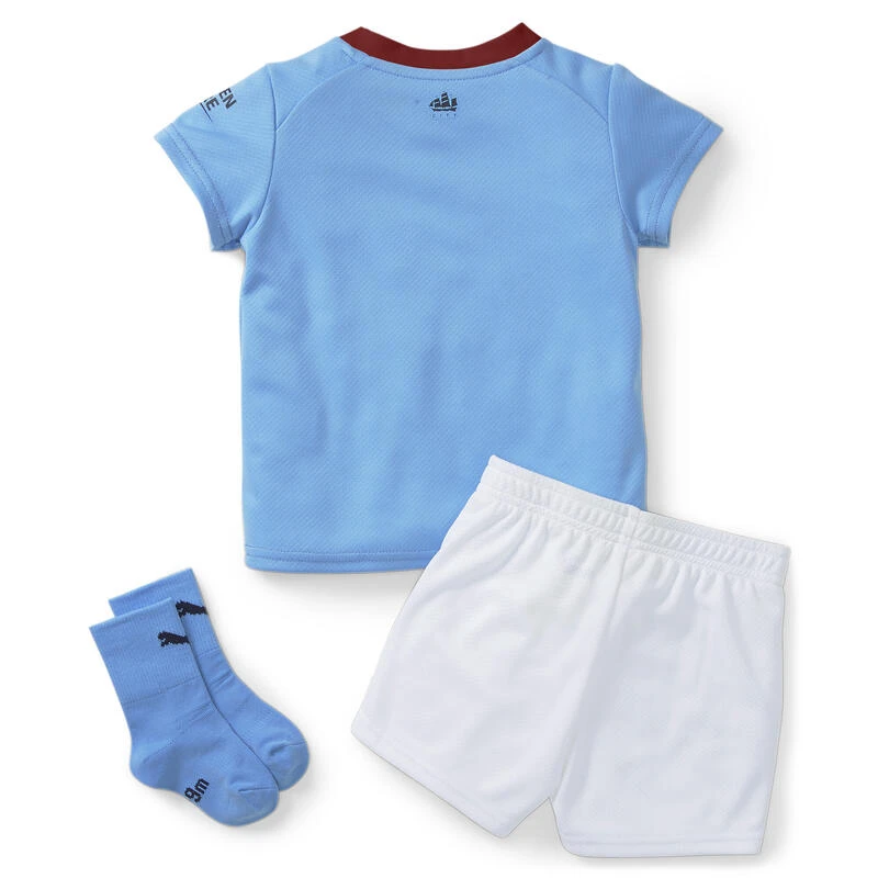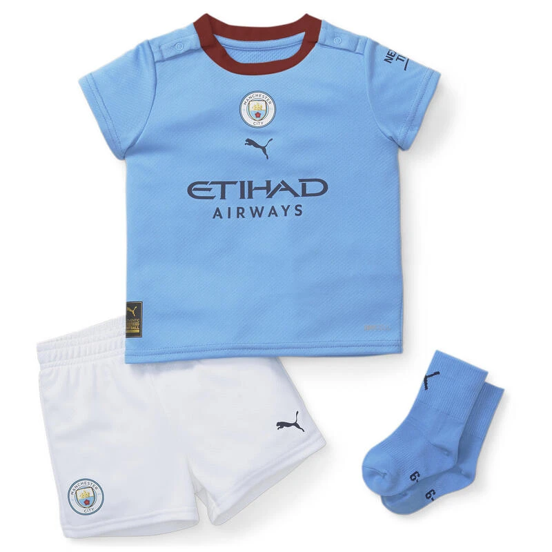 Je kleintje is misschien nog niet klaar voor zijn eerste stapjes op het veld, maar met de Manchester City-thuisbabykit zijn ze klaar voor de oproep. Met een replica-trui, korte broek en sokken, is het net als de versie die door de profs op wedstrijddag wordt gedragen – alleen in een maat die geschikt is voor je kleine superster.