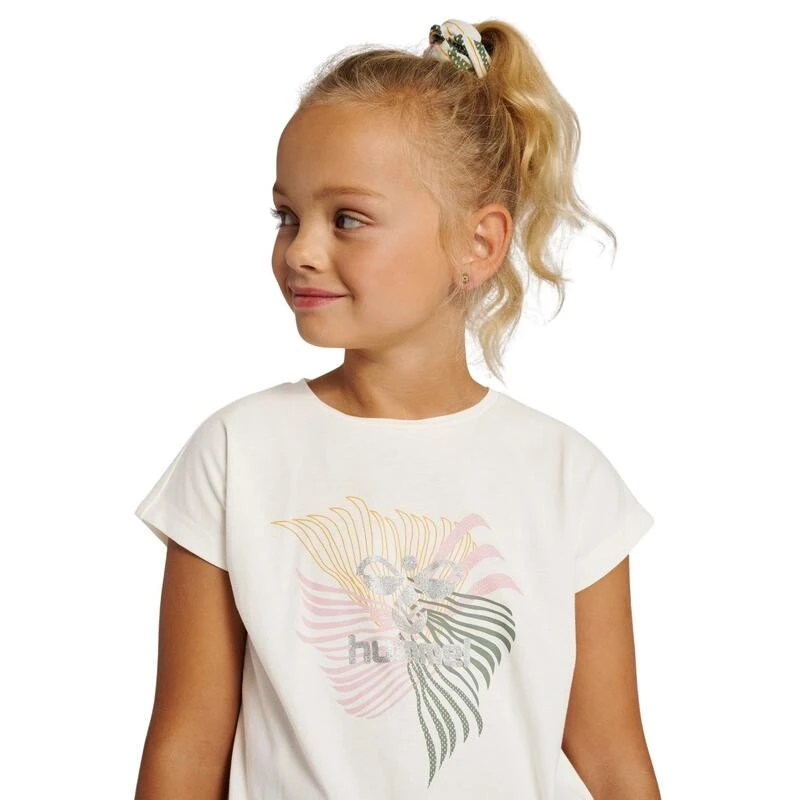 De LYDIA T-SHIRT is een lichtgewicht en stijlvolle optie voor je kleintje dit seizoen met een stretch jersey constructie gemaakt van biologisch katoen dat veel flexibiliteit biedt voor haar non-stop avonturen. nDit klassieke hummel t-shirt heeft een ronde hals en korte mouwen met een glitterprint op de voorkant voor een stijlvolle sparkle.nCompleet met STANDARD 100 by OEKO-TEX label zodat je zeker weet dat dit artikel volledig vrij is van schadelijke chemicaliën.