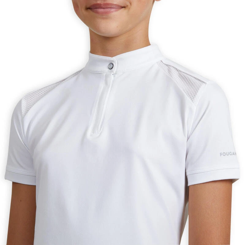 Meisjespolo Met Korte Mouwen Voor Paardrijwedstrijden 500 Wit