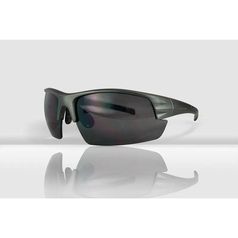 Mirage zonnebril blauw/zwart UV400 protectie. Verstelbare neuspadden. Wordt geleverd met 3 verschillende sets glazen welke gemakkelijk zijn te verwisselen. De set wordt geleverd met lenzen in de kleuren Sapphire, Smoke en Transparant. Wordt geleverd met microfiber hoesje (etui). Hardcase brillenkoker is een optionele accessoire.