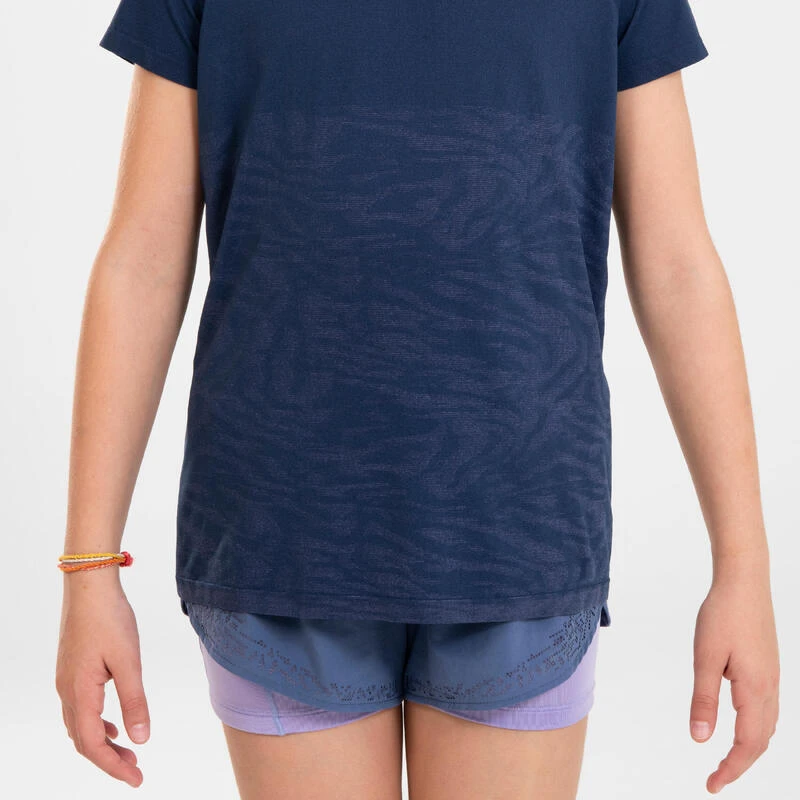 8735869Onze productontwikkelaars, zelf fervente atleten, ontwierpen dit hardloopshirt in een vrouwelijk model voor meisjes die op zoek zijn naar lichte kleding voor warm weerDankzij de ultralichte stof en naadloze constructie wordt dit T-shirt de favoriet van je dochter voor trainingen in warm weer, zelfs bij intensief trainen blijft de huid droog