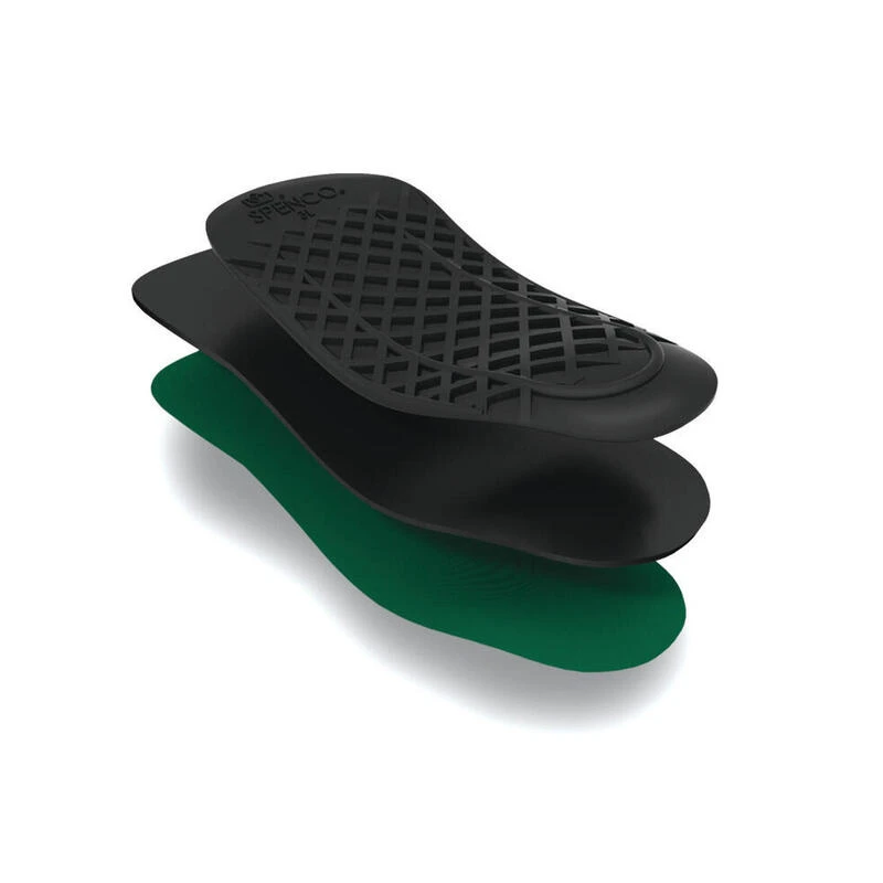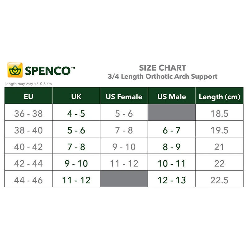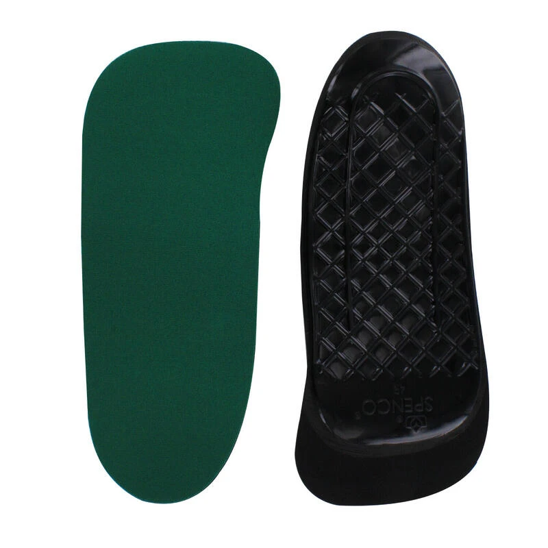 Spenco’s RX 3/4 boogkussens bieden lichtgewicht ondersteuning van de voetboog. Aanbevolen voor mensen met algemene voetboogpijn, deze binnenzool is geschikt voor kleding, vrijetijds- en sportschoenen. Het 3/4-ontwerp is ideaal voor smalle schoenen zonder de teenruimte aan te tasten. Spencore-materiaal absorbeert schokken en stoten voor comfort bij elke stap. Een flexibel voetboogkussen biedt stabiliteit en ondersteuning om de juiste houding te behouden, verlichting en ondersteuning voor vermoeide voeten. Silpure antimicrobiële technologie op de bovenste voering voorkomt blaren en houdt geurtjes tegen. De Spenco RX Arch Cushions-binnenzool is verkrijgbaar in zeven maten voor een juiste plaatsing van het boogkussen om een betere algehele pasvorm, comfort en prestaties te bevorderen. Kan met de hand worden gewassen in warm water en indien nodig aan de lucht worden gedroogd.