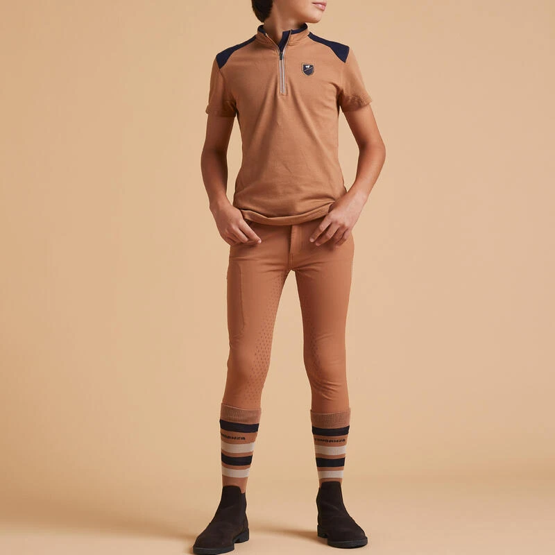 8789687Onze ontwikkelaars, die zelf paardrijden, ontwierpen dit poloshirt voor gevorderde jonge ruiters! Hij is ideaal in de overgangstijd tussen seizoenen of bij warm weer.Ons poloshirt 500 is zacht en aangenaam om te dragen! De stof voelt ook nog fijn aan als je kind het warm krijgt door de inspanning en droogt snel. Langer rugpand zodat het shirt alle bewegingen volgt
