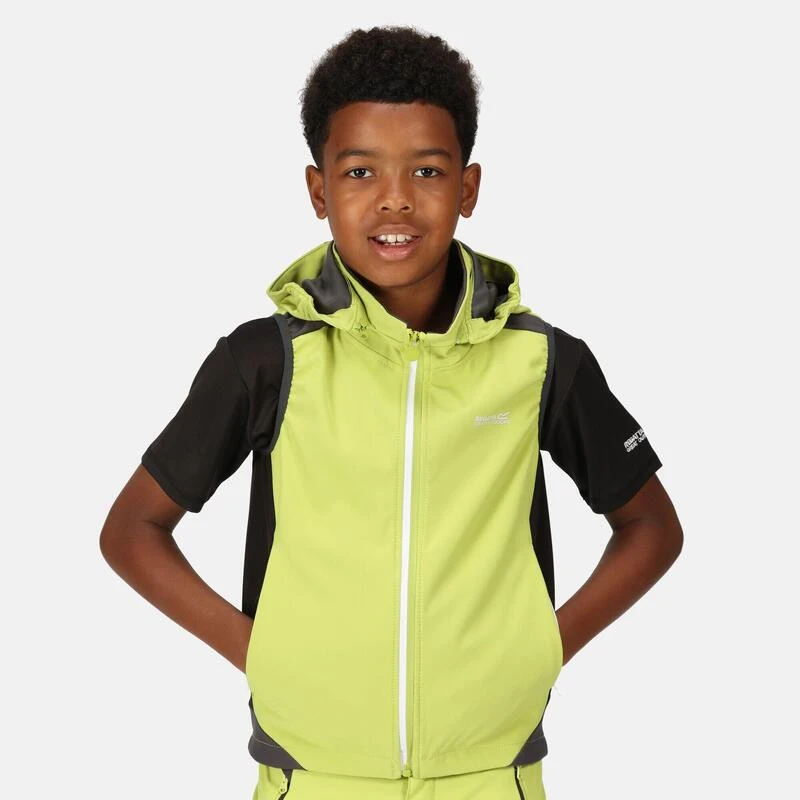De Acidity VI bodywarmer van Regatta voor kinderen is ideaal voor hun avonturen. De kinderbodywarmer is uitgevoerd met softshell-stof met een voering van jerseystof om ze warm te houden en bescherming te bieden tegen de regen. Ze kunnen lekker blijven bewegen dankzij de toegevoegde stretch. Afgewerkt met reflecterende bies.