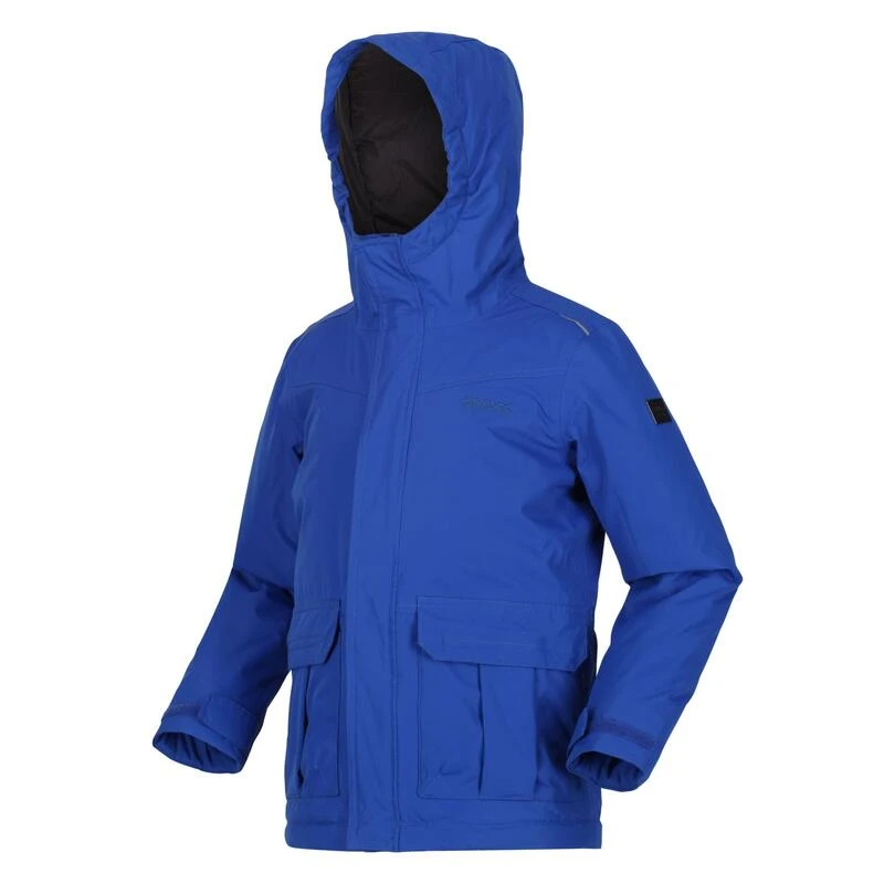 De Bardron Jacket van Regatta. De jas voor kinderen heeft tal van eigenschappen waarmee ze alle weersomstandigheden aankunnen, waaronder een waterafstotende afwerking, isolatie en getapete naden. De jas is afgewerkt met een stijlvolle en sierlijke coating. De winterjas voor kinderen is ideaal is voor reizen van en naar school en voor avonturen met vrienden in het weekend.