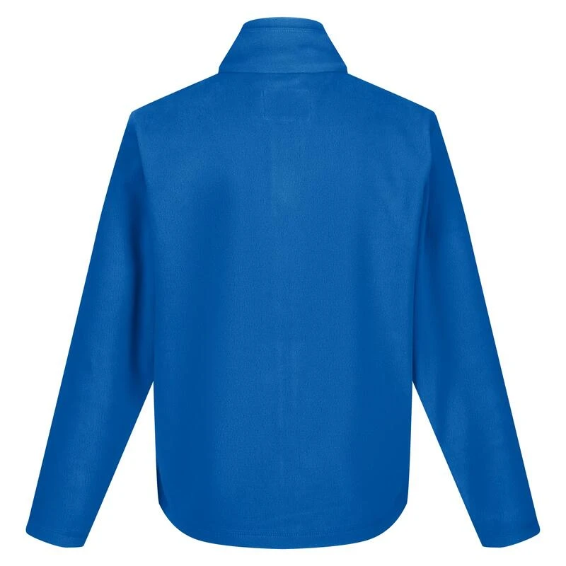 De King II van Regatta. De fleece voor kinderen heeft een geborstelde kant voor een superzacht gevoel en een kant met antipluisafwerking voor langdurig draagcomfort op de grootste avonturen. Kleintjes kunnen spulletjes veilig bewaren in de zakken met rits.