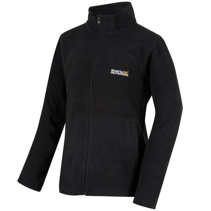 De King II van Regatta. De fleece voor kinderen heeft een geborstelde kant voor een superzacht gevoel en een kant met antipluisafwerking voor langdurig draagcomfort op de grootste avonturen. Kleintjes kunnen spulletjes veilig bewaren in de zakken met rits.