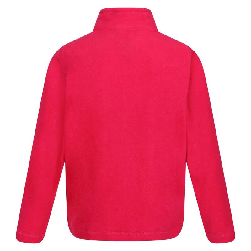 De King II van Regatta. De fleece voor kinderen heeft een geborstelde kant voor een superzacht gevoel en een kant met antipluisafwerking voor langdurig draagcomfort op de grootste avonturen. Kleintjes kunnen spulletjes veilig bewaren in de zakken met rits.