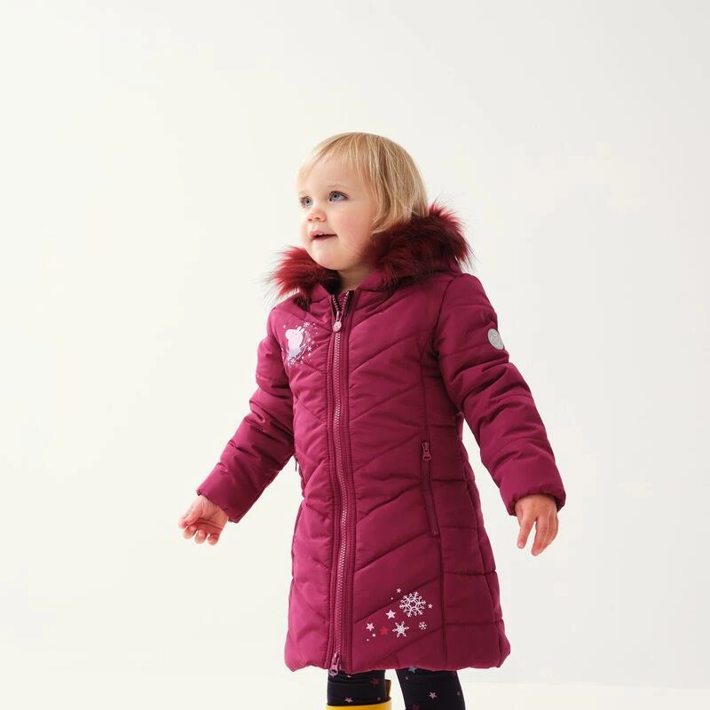 De Peppa Jacket voor meisjes van Regatta. De jas is voorzien van een waterafstotende afwerking en warme isolatie. Peppa Pig is dol op avontuur en met deze jas van Regatta voor meisjes is uw kleine meid dat straks ook! De jas heeft een print van Peppa Pig; ideaal voor het opfleuren van regenachtige dagen in de buitenlucht.