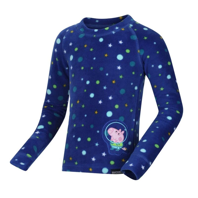 De Peppa Cosy Set van Regatta. Deze schattige set met top en leggings hebben een geborstelde kant voor een superzacht gevoel en een kant met antipluisafwerking voor langdurig draagcomfort. Deze set met een leuk Peppa Pig ontwerp is ideaal voor de kleintjes.