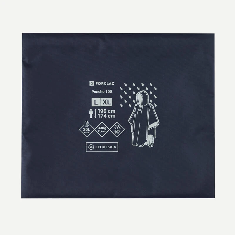 8544274Deze poncho werd ontwikkeld in de Franse Alpen, volgens de principes van ecodesign, en beschermt je tijdens een trektocht. Het model biedt een goede bewegingsvrijheid.Deze regenponcho is onmisbaar op een trektocht. Je gooit hem snel over jezelf en je eventuele rugzak (tot 30 liter) heen om je te beschermen bij een plotse kleine bui.