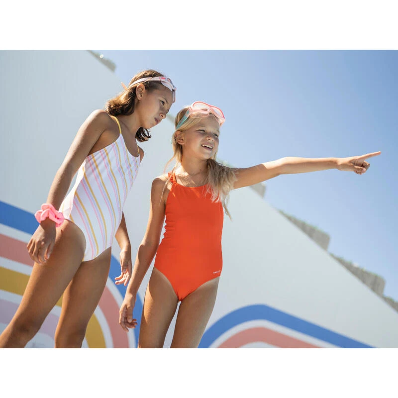 8789051Onze teams ontwikkelden dit badpak voor meisjes die starten met zwemsport en comfortabele zwemkleding willen.Wil je veel vrijheid om te zwemmen? Dit badpak heeft smalle, op de rug gekruiste bandjes voor veel bewegingsvrijheid.
