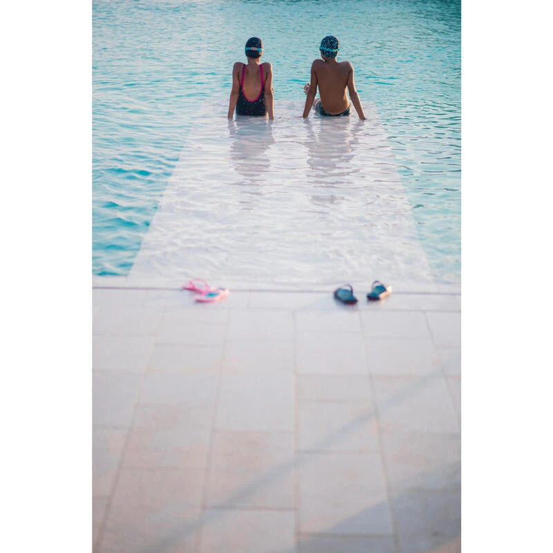 TEENSLIPPERS VOOR AAN HET ZWEMBAD KINDEREN TONGA 500 ROZE MET STRANDPRINT