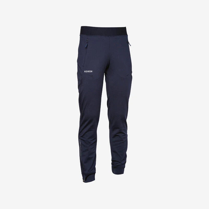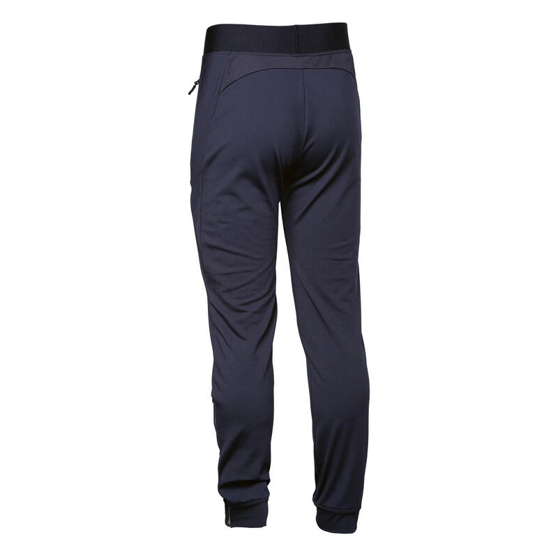 8610202Voor kinderen die een technische trainingsbroek nodig hebben voor hockey.Model aangepast aan de specifieke bewegingen bij hockey. De hoofdstof is waterafstotend. Dankzij de ritsen onder aan de pijpen kan je makkelijk je scheenbeschermers op hun plek steken.