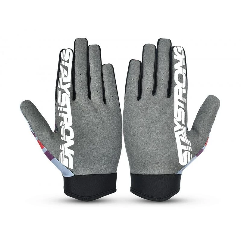 De Stay Strong ICON LINE handschoenen hebben een comfortabele slanke pasvorm. De ICON LINE handschoenen hebben een zeer duurzame Clarino palm. Dit textiel biedt maximale bescherming tegen schuren, verhoogde duurzaamheid en goede ventilatie. De handpalm en de wijs- en middelvinger zijn voorzien van siliconen patches die een optimale grip op het stuur bieden. De handschoen heeft een versterkte constructie met een Clarino patch op de duim.DETAILS:Clarino palm, een zacht, slijtvast en ademend textiel met een suede-achtige textuur en zacht gevoel.Zachte Lycra bovenkant zorgt voor comfort en een goede pasvorm.Siliconen patch gedrukt op de palm, wijs- en middelvinger.Klittenbandsluiting voor een goede pasvorm.Machinewasbaar